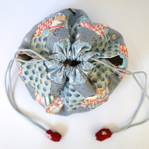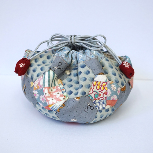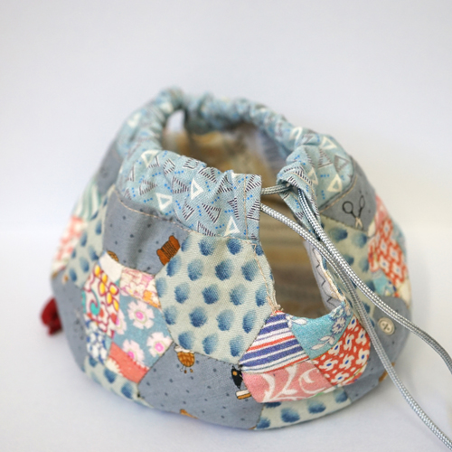 ヘキサゴンとペンタゴンをつないで、サッカーボールのようなまあるいコロンとしたポーチを作ってみませんか? ひも飾りにはかわいいチューリップをつけます。 ■出来上がりサイズ: 口巾15×タテ7×底直径12 ■キット内容: 生地・ひも・綿(ひも飾り用)